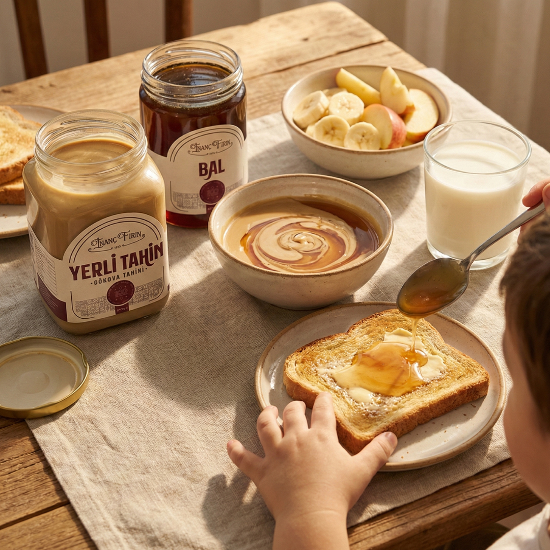 Tahin, özenle seçilen susamların öğütülmesiyle elde edilir. Üretim sürecinde susamın doğal yağı korunur ve katkı maddesi kullanılmaz. Çam balı ise kendine özgü aromasıyla bilinen, doğal yapısı bozulmadan sofraya ulaşan bir bal çeşididir. Her iki üründe de geleneksel üretim anlayışı esas alınır.