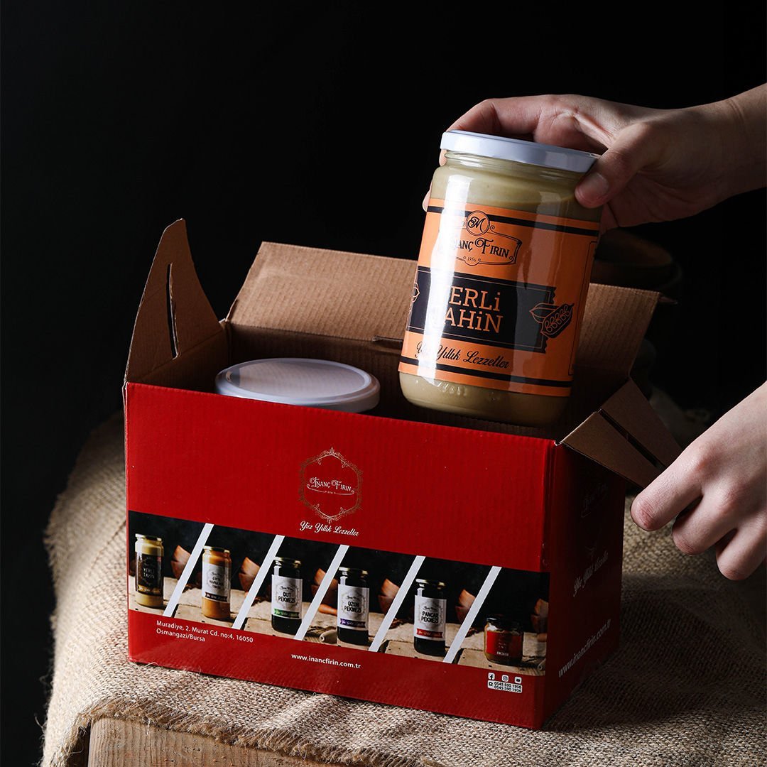 - Yerli Tahin (600 gr): Muğla’nın verimli topraklarından gelen susamların taş değirmenlerde öğütülmesiyle elde edilmiştir. Katkı maddesi içermez, doğal kıvamı ve aroması korunmuştur.