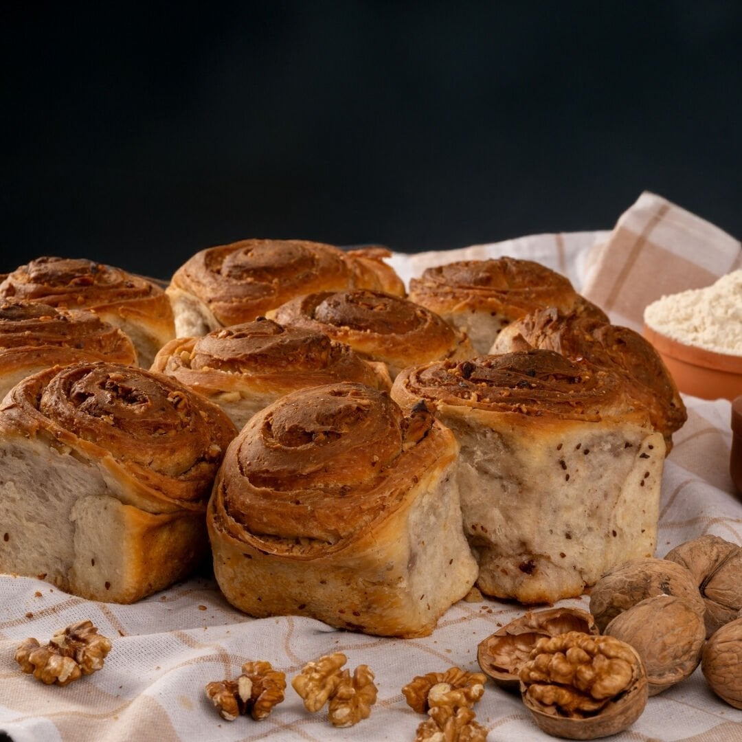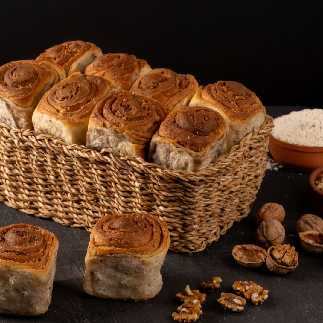 İçindekiler: Ceviz içi, tam buğday unu, yenibahar, sıvı yağ, şeker, maya, tuz, su.
