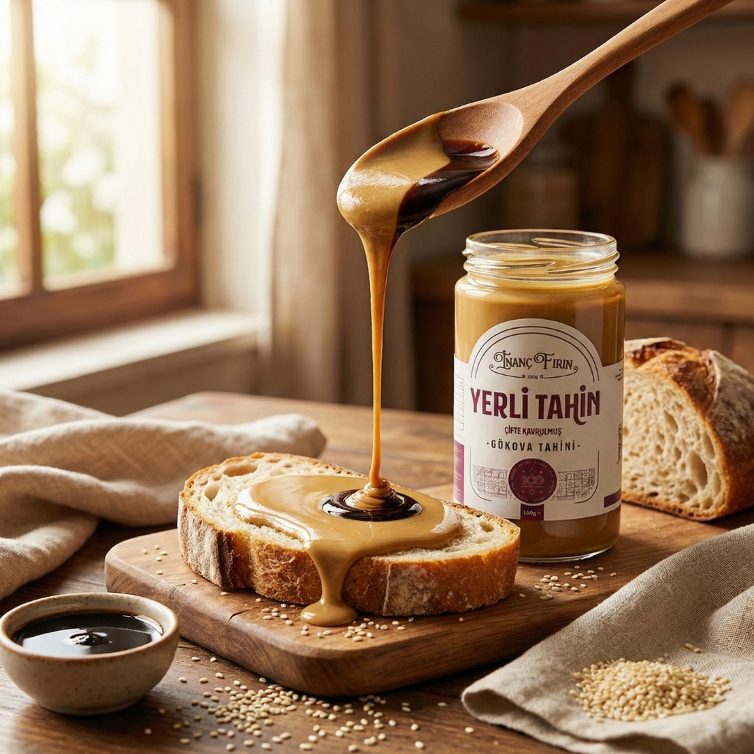 Çifte Kavrulmuş Tahin, susamın iki aşamalı kavrulmasıyla elde edilen, yoğun aroması ve tok yapısıyla öne çıkan özel bir tahin çeşididir. İlave şeker ve katkı maddesi kullanılmadan hazırlanır. Klasik tahine göre daha belirgin bir lezzet sunar.