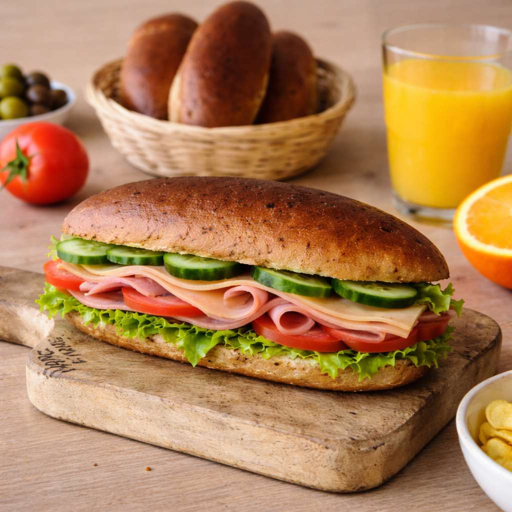 Tam buğday unu, çavdar unu ve çeşitli tohumların bir araya gelmesiyle hazırlanan bu sandviç ekmeği, sade içeriği ve doğal fermantasyon süreciyle üretilir. İlave katkı maddesi ve koruyucu kullanılmaz. Her malzemenin kendine özgü karakteri korunarak dengeli ve doyurucu bir lezzet elde edilir.