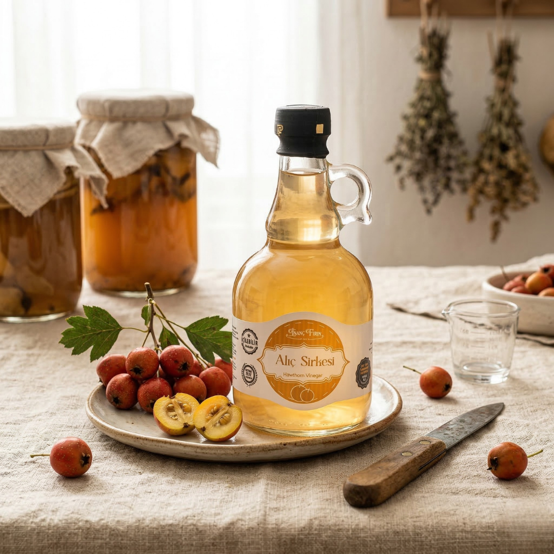 Hiçbir fabrikasyon işleme, ısıl işleme (pastörizasyona) ve süzmeye (filtrasyona) maruz bırakılmayan bu çiğ sirke, alıç meyvesinin tüm antioksidanlarını ve faydalı enzimlerini canlı olarak barındırır. Sanayi tipi sirkeler gibi keskin ve yakıcı değildir; meyvenin kendi doğasından gelen çok yumuşak, hafif buruk ve karakteristik bir içimi vardır. Sızdırmazlık bandı ve darbeye dayanıklı özel hava yastıklı ambalajıyla, fırınımızdan çıktığı güvenle kapınıza ulaşır.