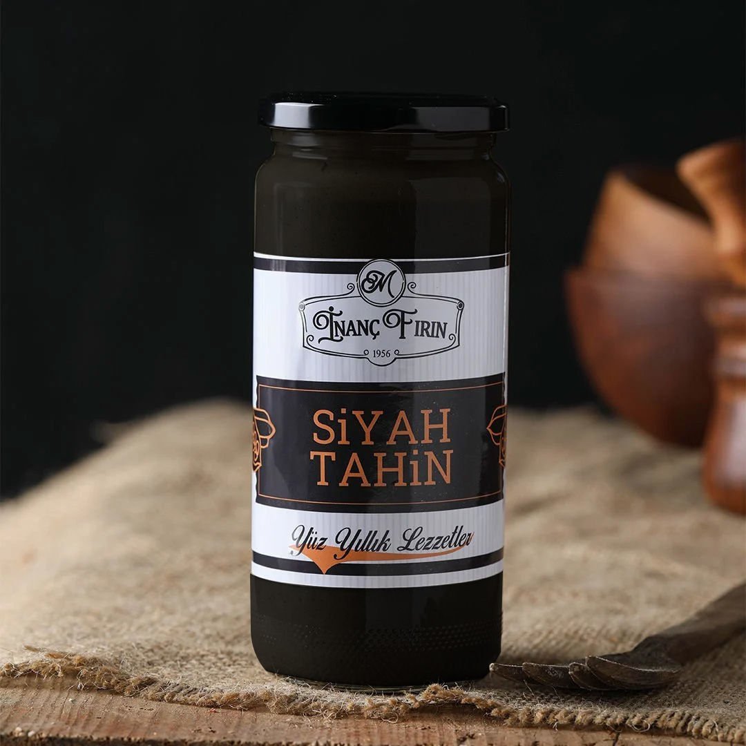 Siyah tahin, özenle seçilen ithal siyah susamların kabuklarıyla birlikte taş değirmenlerde öğütülmesiyle üretilir. Kabuklarıyla işlenmesi, tahine yoğun bir aroma ve kendine özgü bir doku kazandırır. Geleneksel öğütme yöntemi sayesinde saf lezzetini korur.
